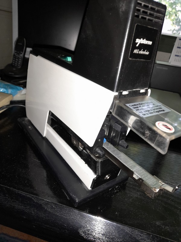 Grapadora eléctrica tipo RAPID 105E. Cargado de grapas frontal, ajuste de profundidad, ajuste de potencia de grapado, conector trasero para grapado en línea. Capacidad de grapado 50 hojas. Más información a través de nuestra Web o por correo electrónico.