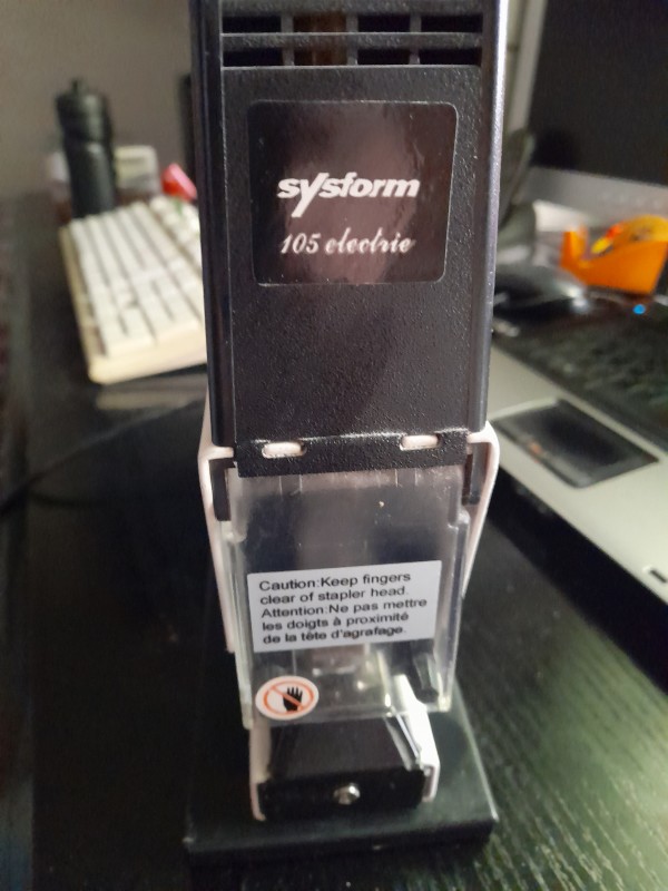 Grapadora eléctrica tipo RAPID 105E. Cargado de grapas frontal, ajuste de profundidad, ajuste de potencia de grapado, conector trasero para grapado en línea. Capacidad de grapado 50 hojas. Más información a través de nuestra Web o por correo electrónico.